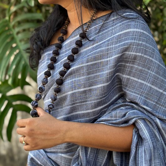 Black And Ash Stripe With Black Tussar Handloom Saree