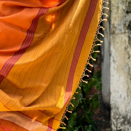 Orange And Brown Mustard With Mustard Tussar Handloom Saree