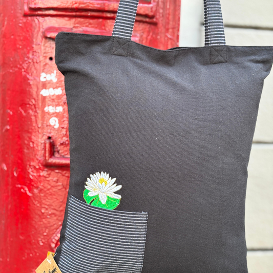 Black And Ash Stripe With Black Tussar Handloom Saree