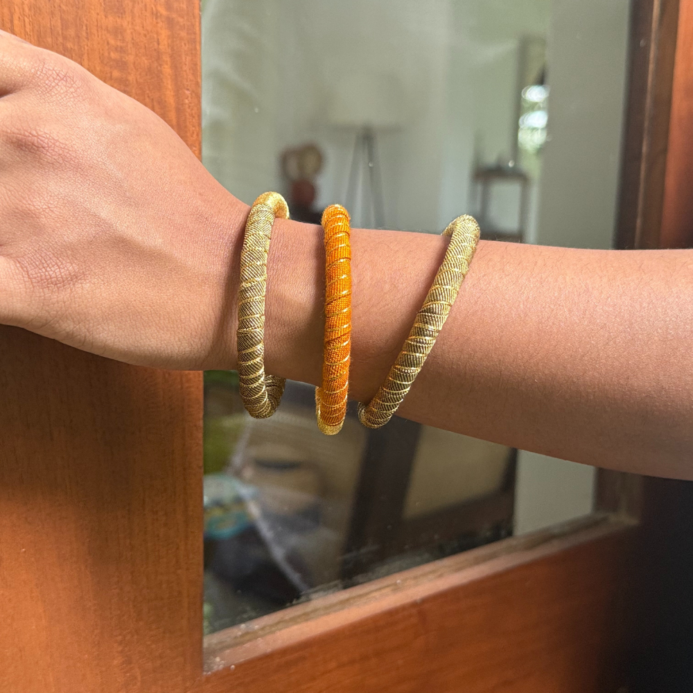 Our upcycled handloom cotton bangles are handmade using production offcuts, turning waste into beautiful, sustainable jewelry. Lightweight and eco-friendly, these colorful bangles are perfect for everyday wear or to add a unique touch to any outfit.