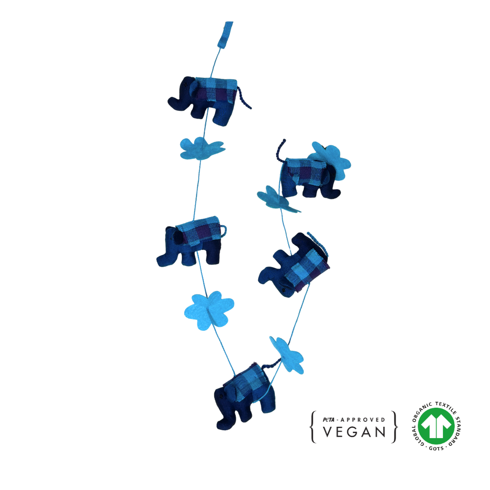 Add artisanal charm to your home with this handcrafted elephant wall hanging. Made from eco-friendly handloom cotton, it showcases colorful elephant and flower accents along with a charming bell, bringing tradition and vibrancy to any space. Perfect for the living room, bedroom, nursery, or meditation area, this ethnic elephant garland doubles as both a decorative wall hanging and a unique festive décor piece.